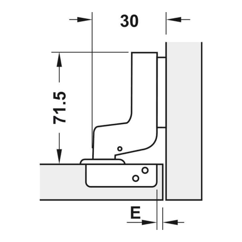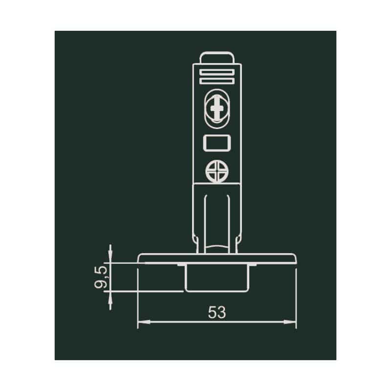 Thông số kĩ thuật của bản lề Metalla SM giảm chấn 95 độ MINI lắp gài trùm ngoài Hafele 311.04.442