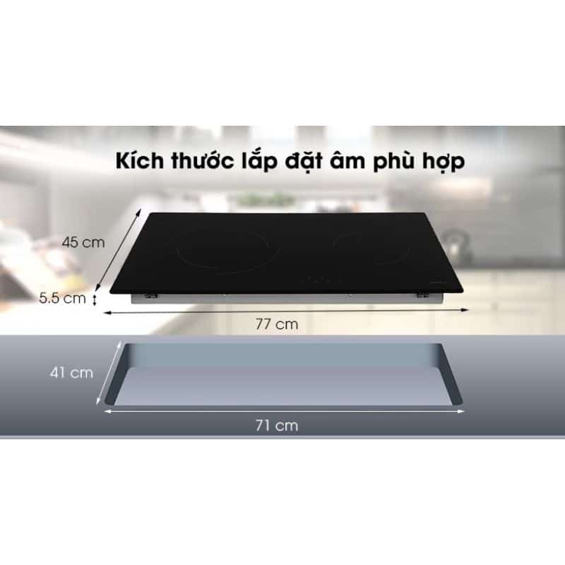 - 1 vùng nấu cảm ứng từ: Ø220 mm – 2,3/ 3,0 kW (gia nhiệt nhanh)