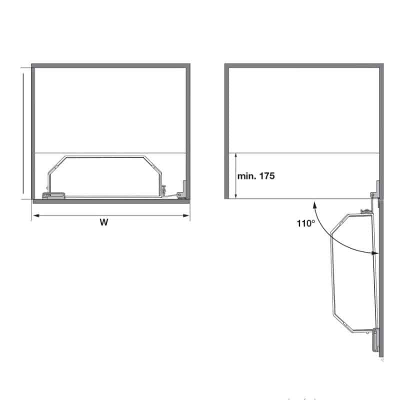 - Chiều sâu khoang tủ: Phù hợp với khay 175 mm