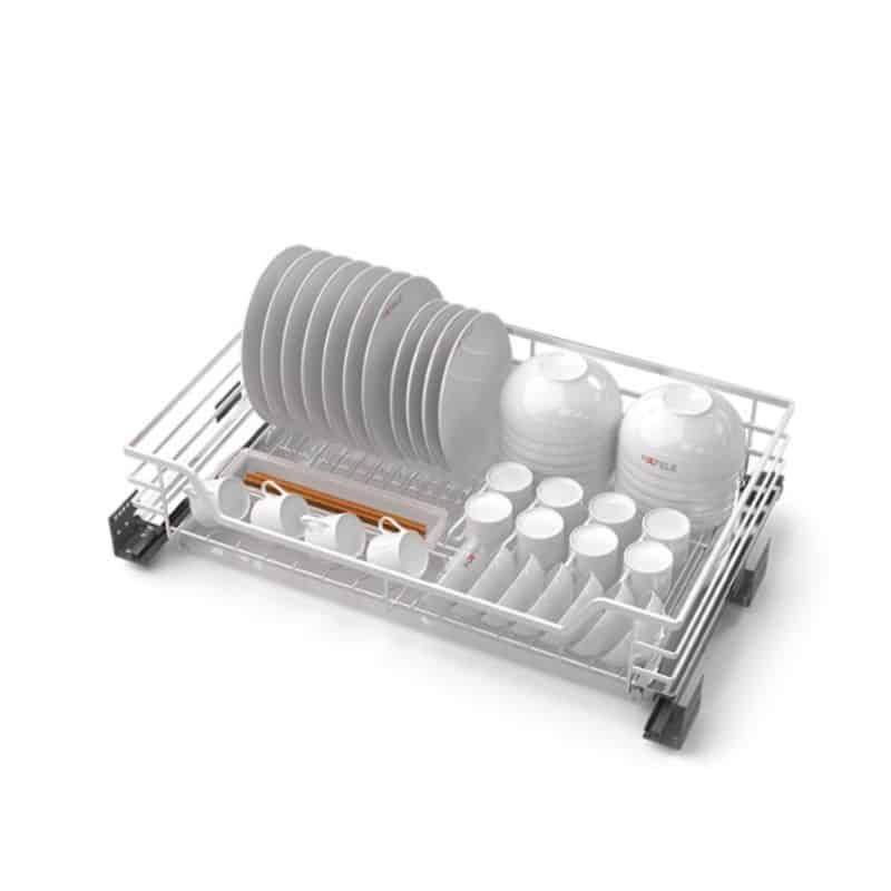 - Bộ rổ, bộ ray giảm chấn, khay hứng nước, 2 thanh đỡ khay, 2 bas mặt trước, 2 bas hậu cho ray trượt, 2 bas giữ ray, 12 ốc lắp đặt.