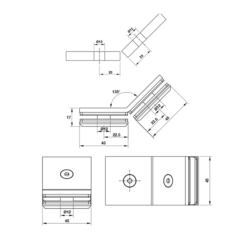 - Trọng lượng cửa tối đa: 45Kg/ 2 kẹp kính