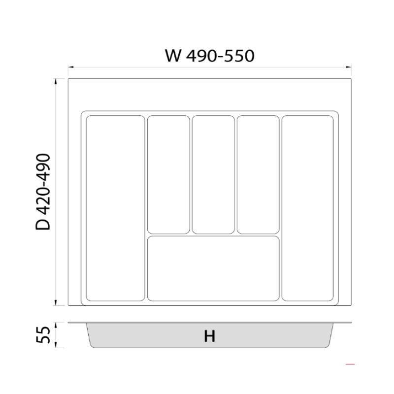 - Kích thước : R (490 550) x S (420 474) x C55mm