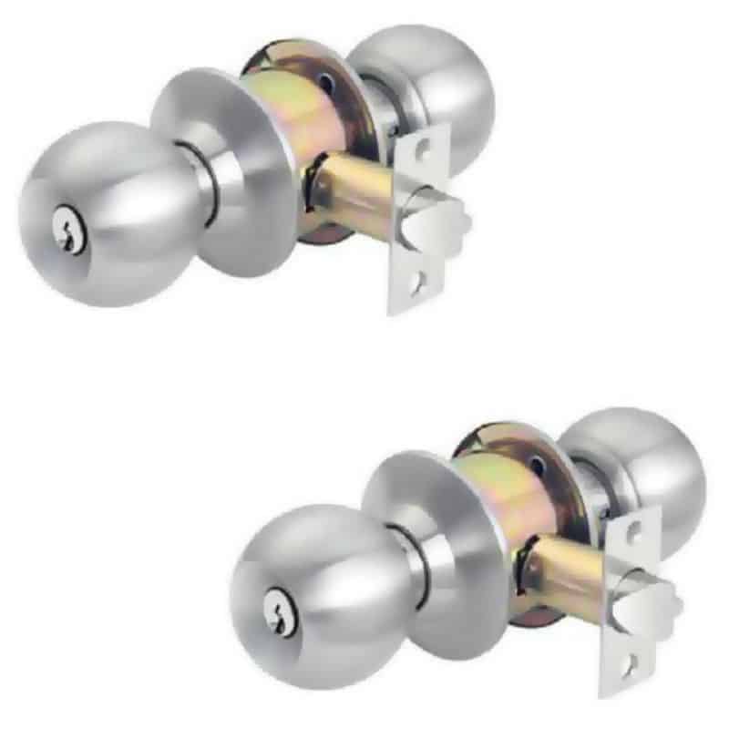 - Trọn bộ gồm: 1 khóa tay nắm tròn, 1 cò khóa, 1 bas khóa, 3 chìa khóa (loại cửa phòng), Vít