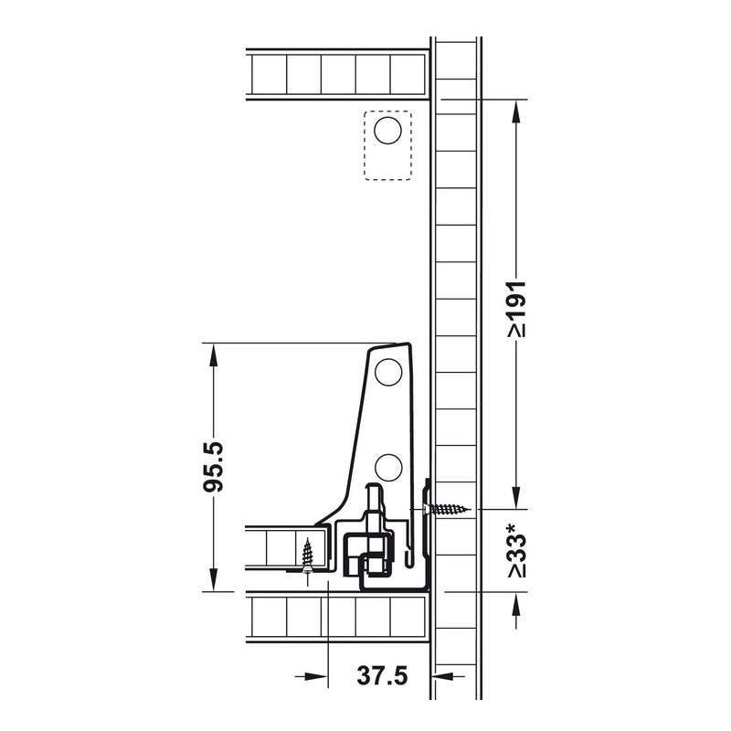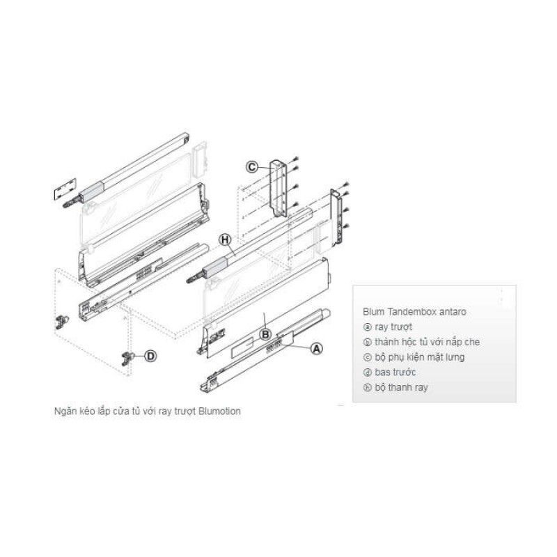Thông số kĩ thuật của ray hộp Hafele Antaro X3 30kg giảm chấn màu đen D 228mm 550.85.305