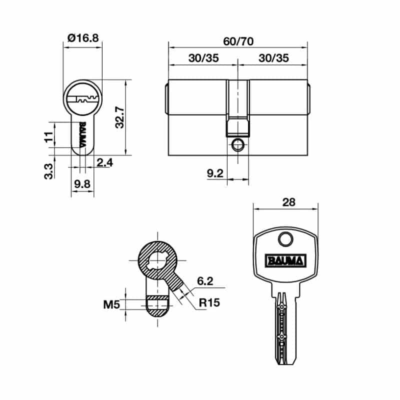 - Trọn bộ gồm: 1 ruột khoá + 3 chìa + 1 vít