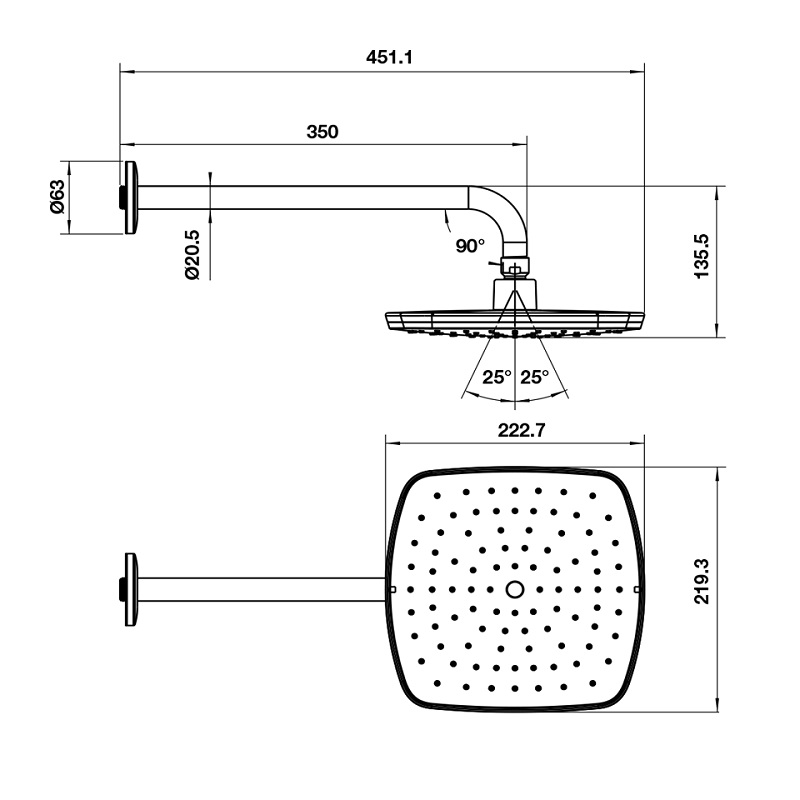 Tính năng của sen đầu gắn tường New Mysterious 219S Hafele 485.60.700